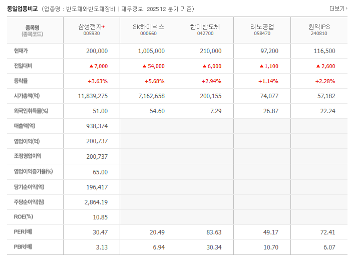 삼성전자는 반도체 업황 회복 기대감과 실적 개선 흐름 속에서 강한 상승을 보였다. 수급과 차트 모두 긍정 신호를 보내고 있지만, 밸류 부담도 동시에 존재한다.