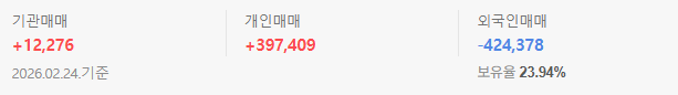 약 380만주 거래는 중대형주 기준 의미 있는 수준이다. 다만 강한 매수 집중보다는 매수·매도 공방 양상이 나타난 것으로 보인다.